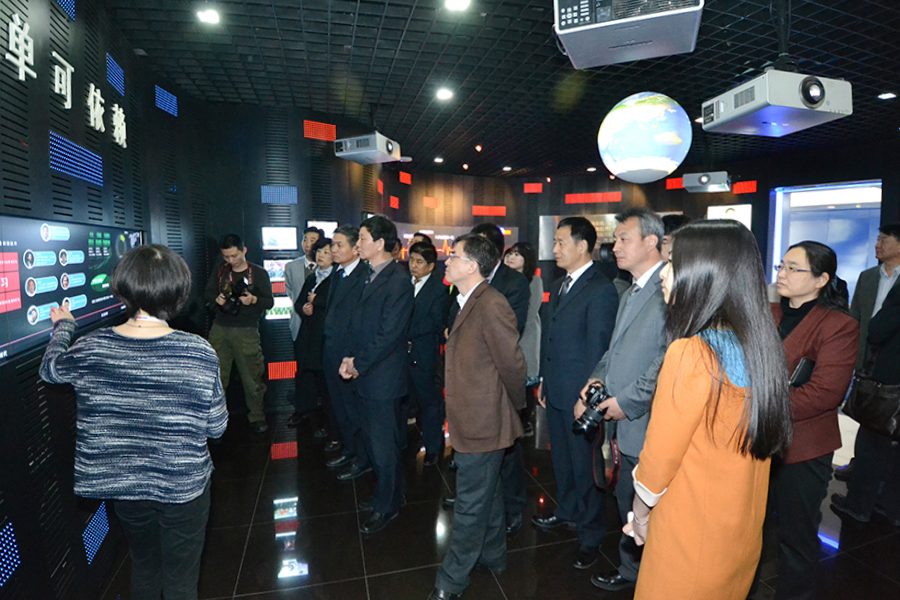 中国地方志指导小组办公室党组书记赵芮、副主任刘玉宏,北京市地方志办公室主任王铁鹏、副主任侯宏兴与陕西省地方志办公室主任王锦春,副主任史天社、吴玉莲及西安、宝鸡、咸阳、渭南地方志办公室、省地方志办公室相关处室的同志一起观看了陕西数字方志馆上线演示