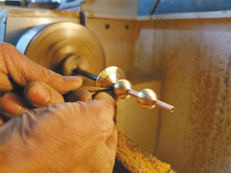 薛小红正在打磨唢呐芯子。 本报记者 陈宏江摄